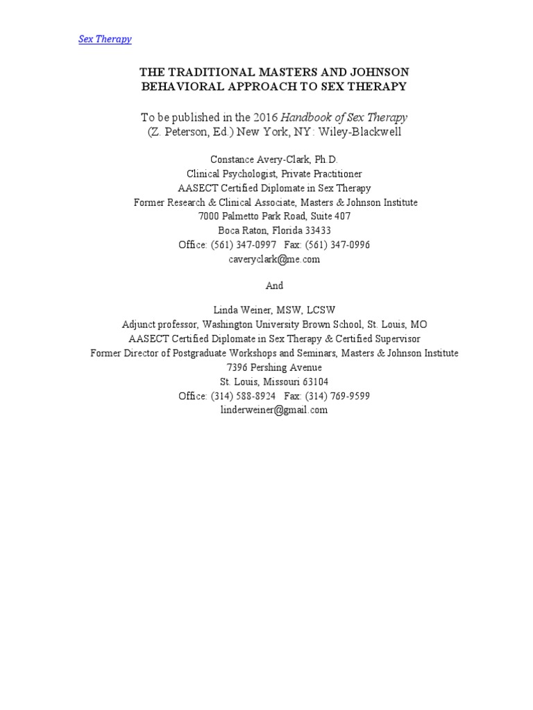 It represents the fulfillment of William Masters and Virginia Johnsons intention to publish a detailed account of the steps involved in Sensate Focus. Asked Mar 31 2016 in Psychology by Andrea. Treatment effectiveness studies of Masters and Johnsons sensate focus therapy have indicated that certain aspects of the treatment such as two therapists and daily therapy are not necessary The sex therapy technique designed specifically to treat premature ejaculation is.