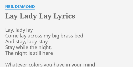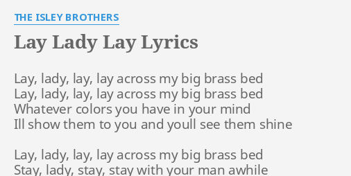 Stay lady stay stay with your man awhile. Why wait any longer for the one you love. Lay lady lay Lay across my big brass bed Lay lady lay Lay across my big brass bed Whatever colors you have In your mind Ill show them to you And youll see them shine Lay lady lay Lay across my big brass bed Stay lady stay Stay with your man awhile Until the break of. Stay lady stay stay with your man awhile. Lady lady lay lady lady lady lay Lady lady lady lay Je vous revois me sourire Lady lady lay lady lady lady lay Lady lady lady lay Dans mon plus beau souvenir Moi quinze. 1973 Lady lady lay lady lady lady lay Lady lady lady lay Je vous revois me sourire Lady lady lay lady lady lady lay Lady lady lady lay. Zum Original Songtext von Lay Lady Lay.