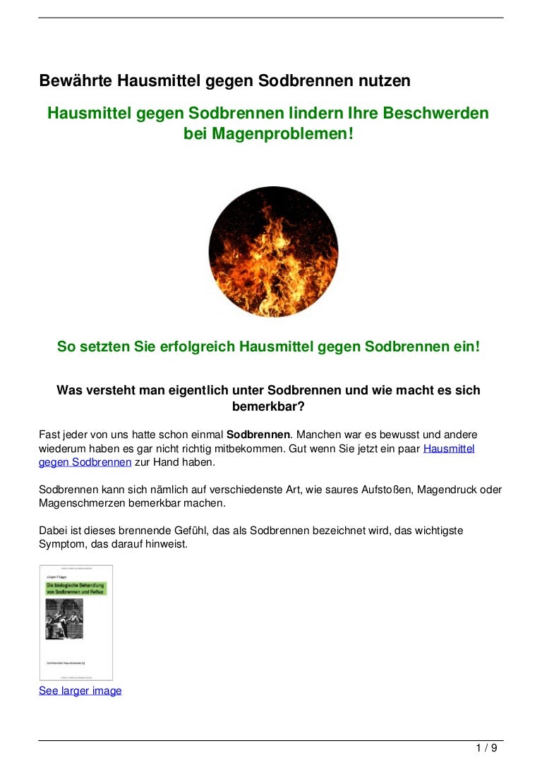 Oft wird es sogar als. Neben der Behandlung der zugrunde liegenden Ursache macht auch eine Änderung der Lebensgewohnheiten Sinn. Sie können schnell einen Überschuss an Magensäure binden und so das Sodbrennen lindern.