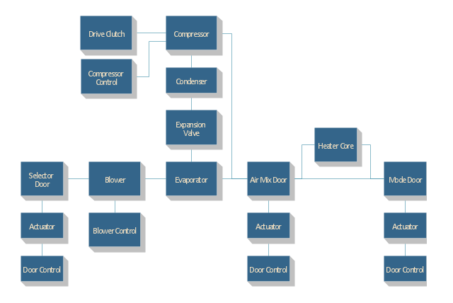 Inside the big boxes that you see on top of office or apartment buildings are a blower heating and cooling elements filter racks and chambers and dampers. The air is pushed across the evaporator cooling coil where the air is cooled and returned to the space through the supply ducts. Riserdropper pipes and ducts are two major HVAC systems that will always have a schematic drawing.